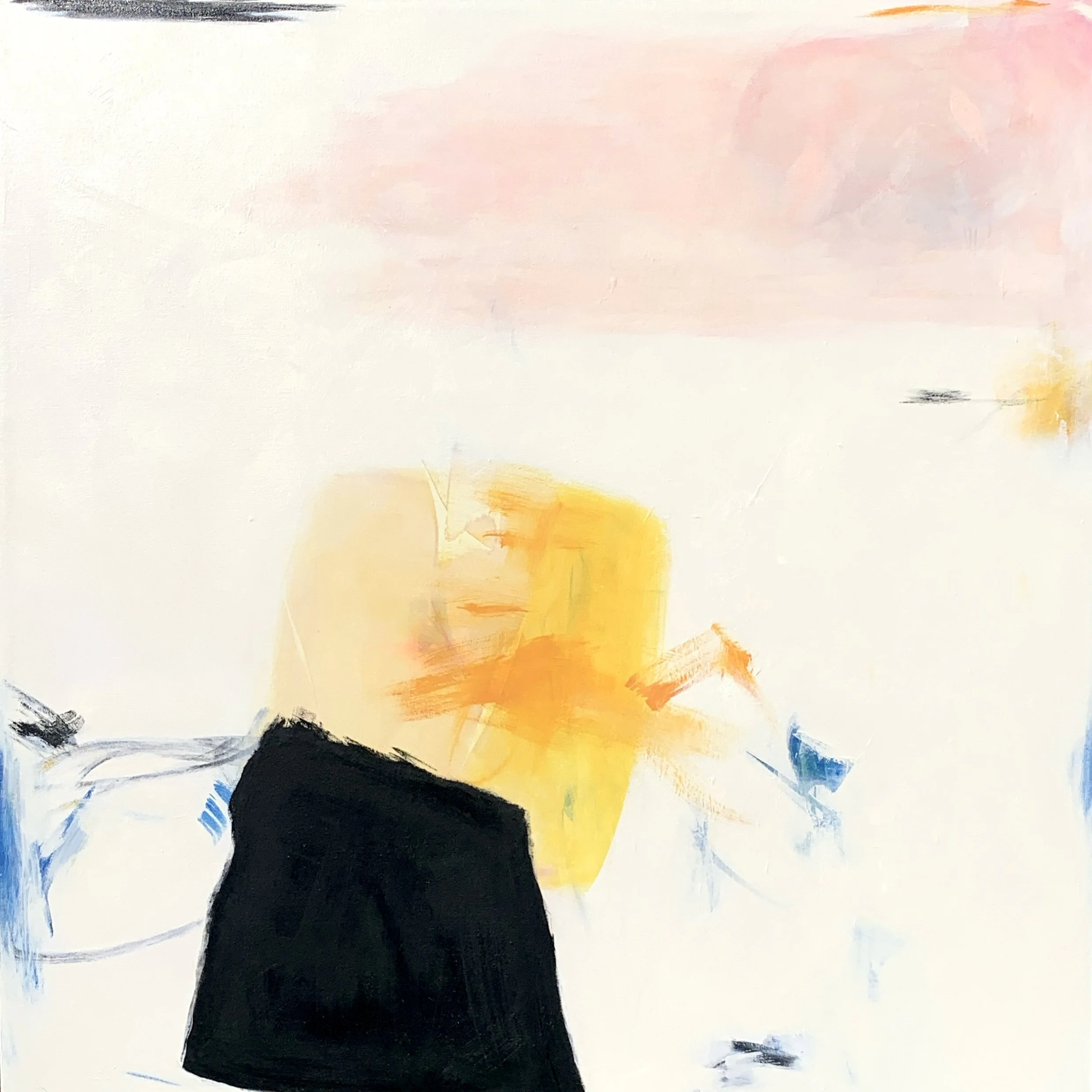 SUNSET AND THE LOTUS, 4 ft by 4 ft, mixed media on canvas.