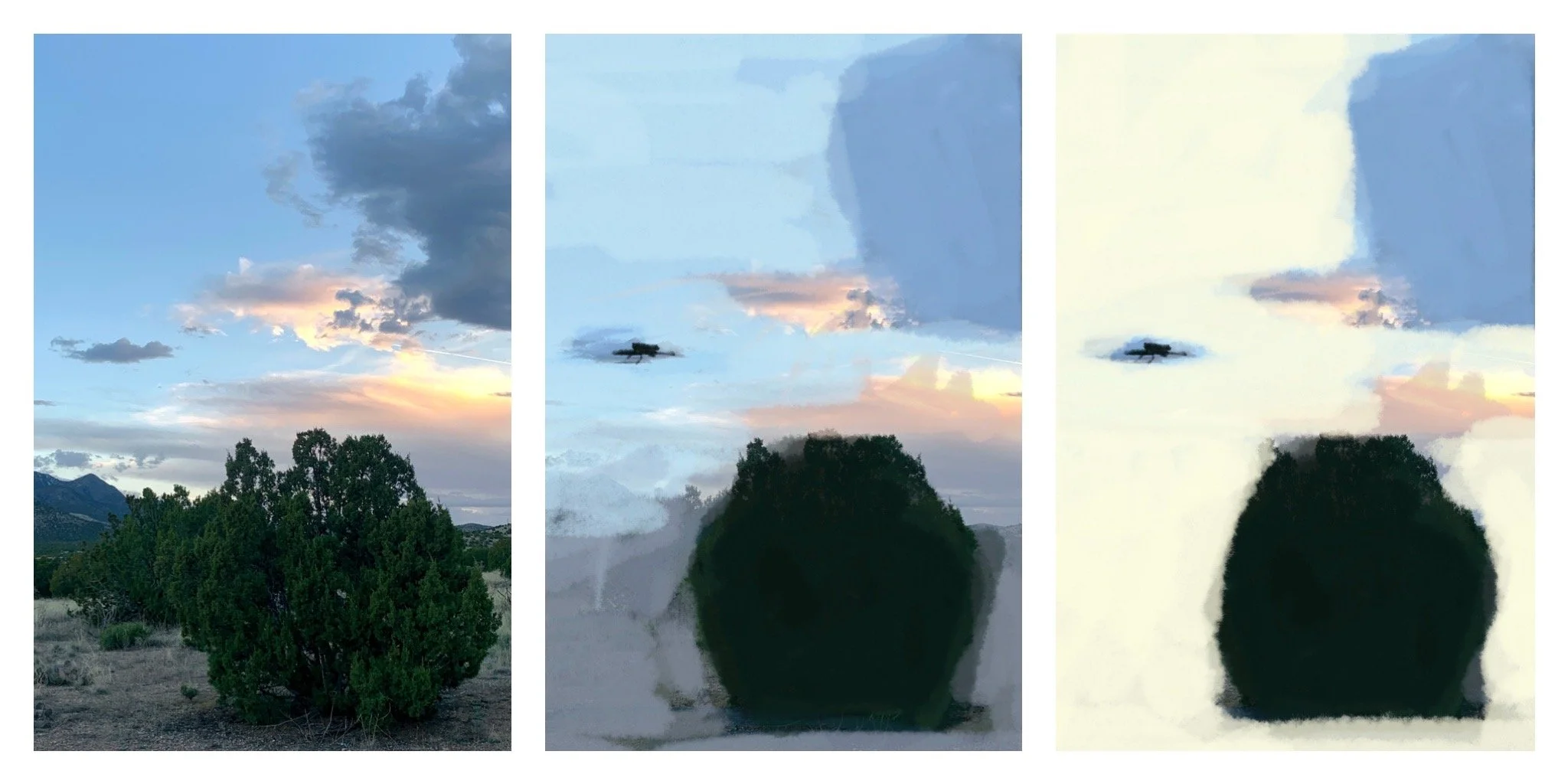 I used Pocket, the mobile version of the app Procreate, to block in the landscape elements that stand out to me.