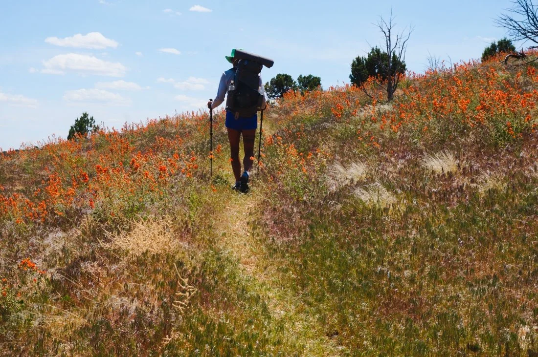 Another day of forest walking, a valley of sage, big clouds, a few drops of rain, a few cyclists, and a night of rain—we arrive at Jacob Lake just in time for breakfast. We meet several Arizona Trail hikers nearing the end of their thru-hike. It’s so refreshing to talk all things trail with other thru-hikers. We check into the hotel and spend the rest of the day doing sink laundry, eating, and resting up for the next section. We leave Jacob Lake with ten days of food; unsure of how long re-routing around the Grand Canyon will take.