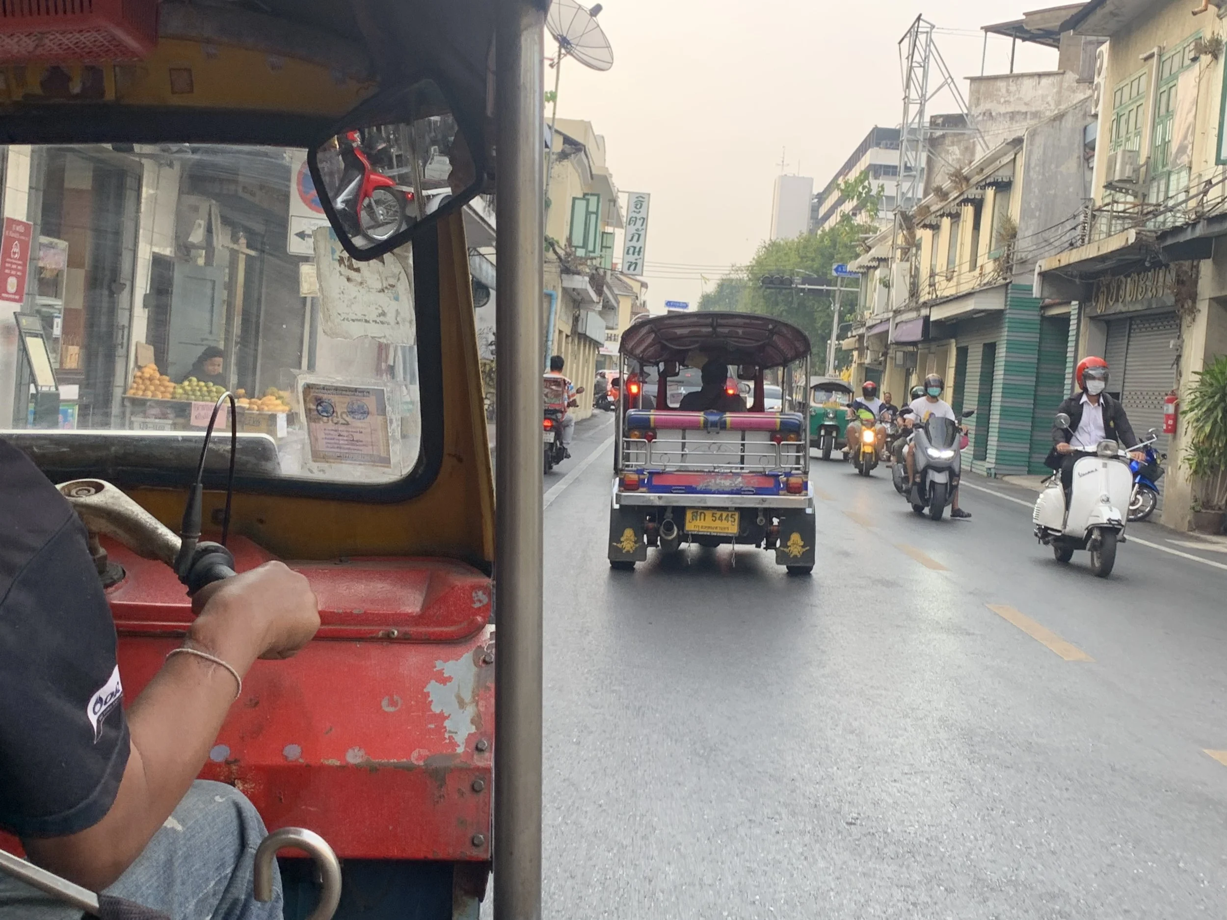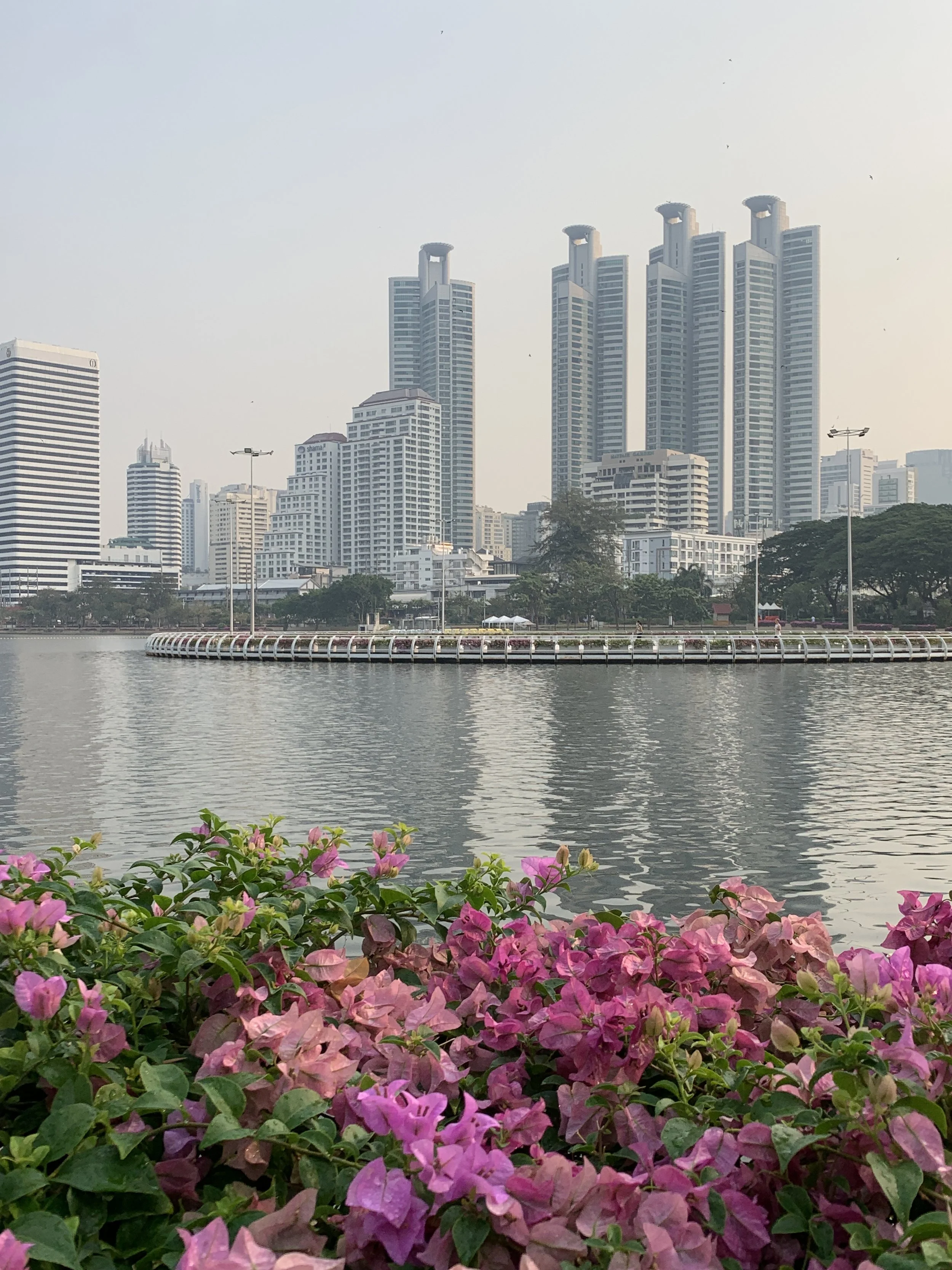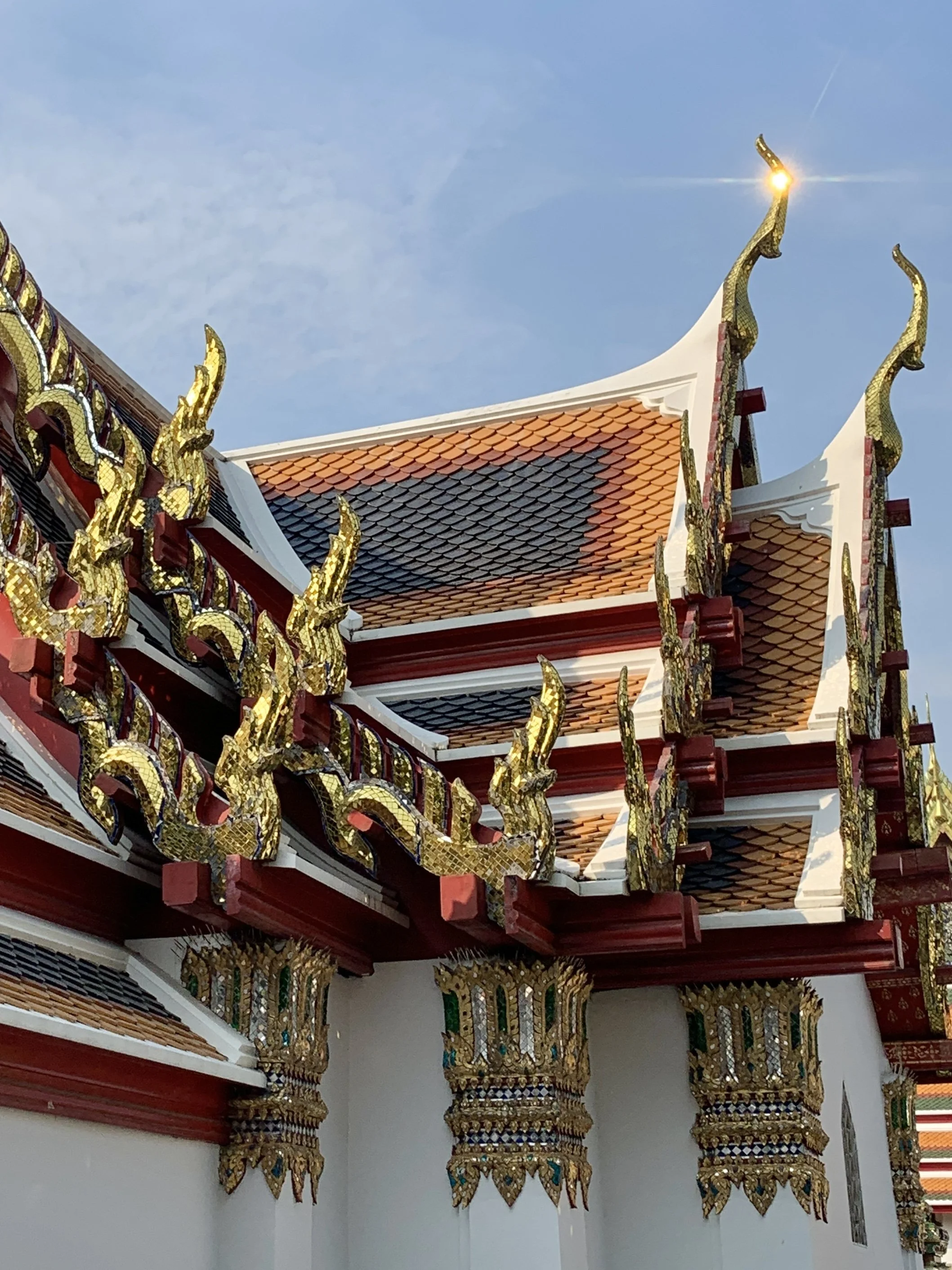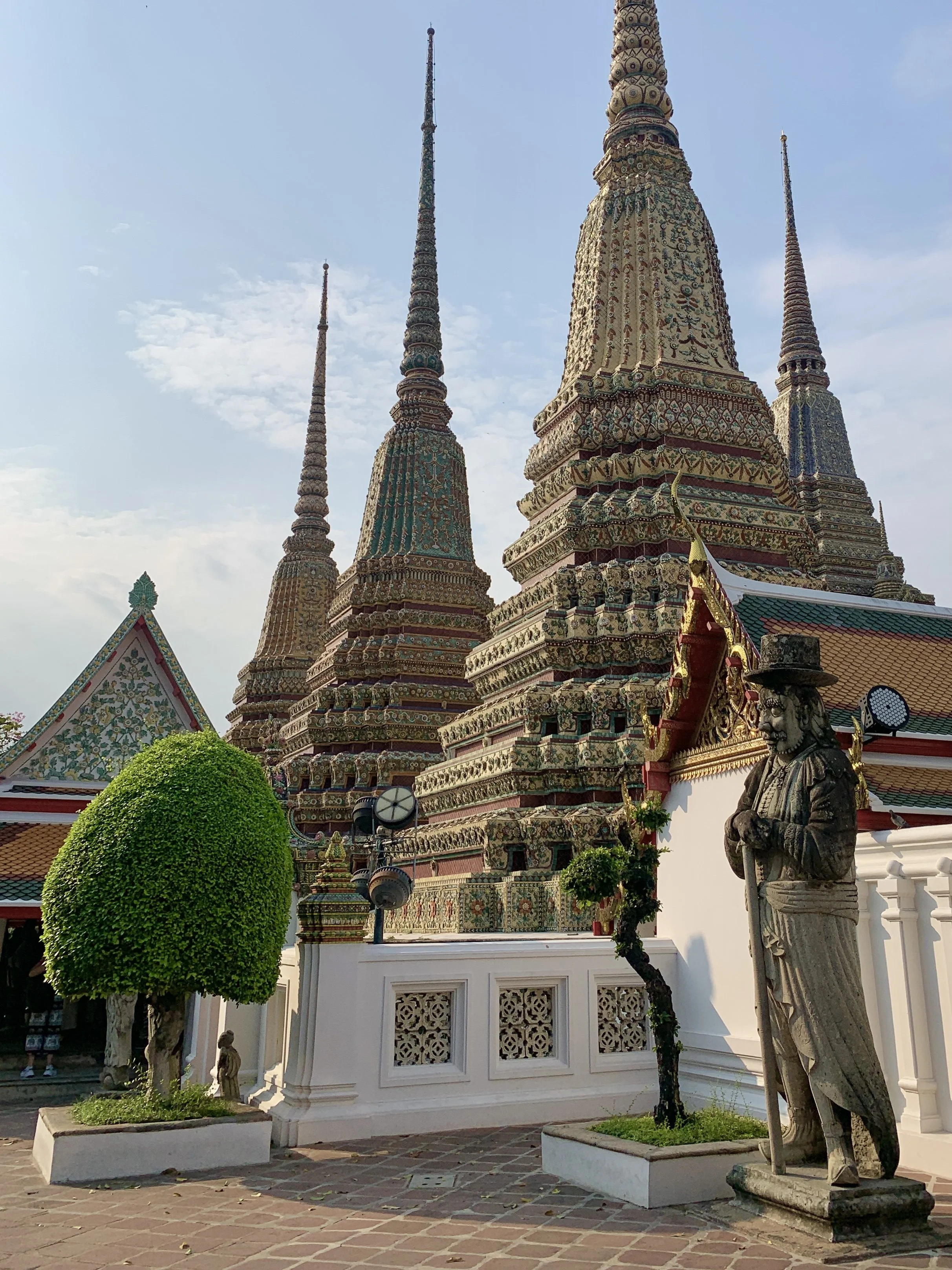 During our three days, we visited Benchakitti Park, Lumpini Park, Wat Pho, Wat Arun, and the Bangkok Museum of Contemporary Art. We rode on a small ferry, in trains, tuk-tuks, and impatient taxis. I ate so much curry! Smoothies, remembering to ask for “no sugar”, accompanied my every meal. I woke up starving everyday at one a.m. And it wasn’t until the morning of our departure on day four that my nights and days and hunger windows finally started to line up with the time zone in Thailand.