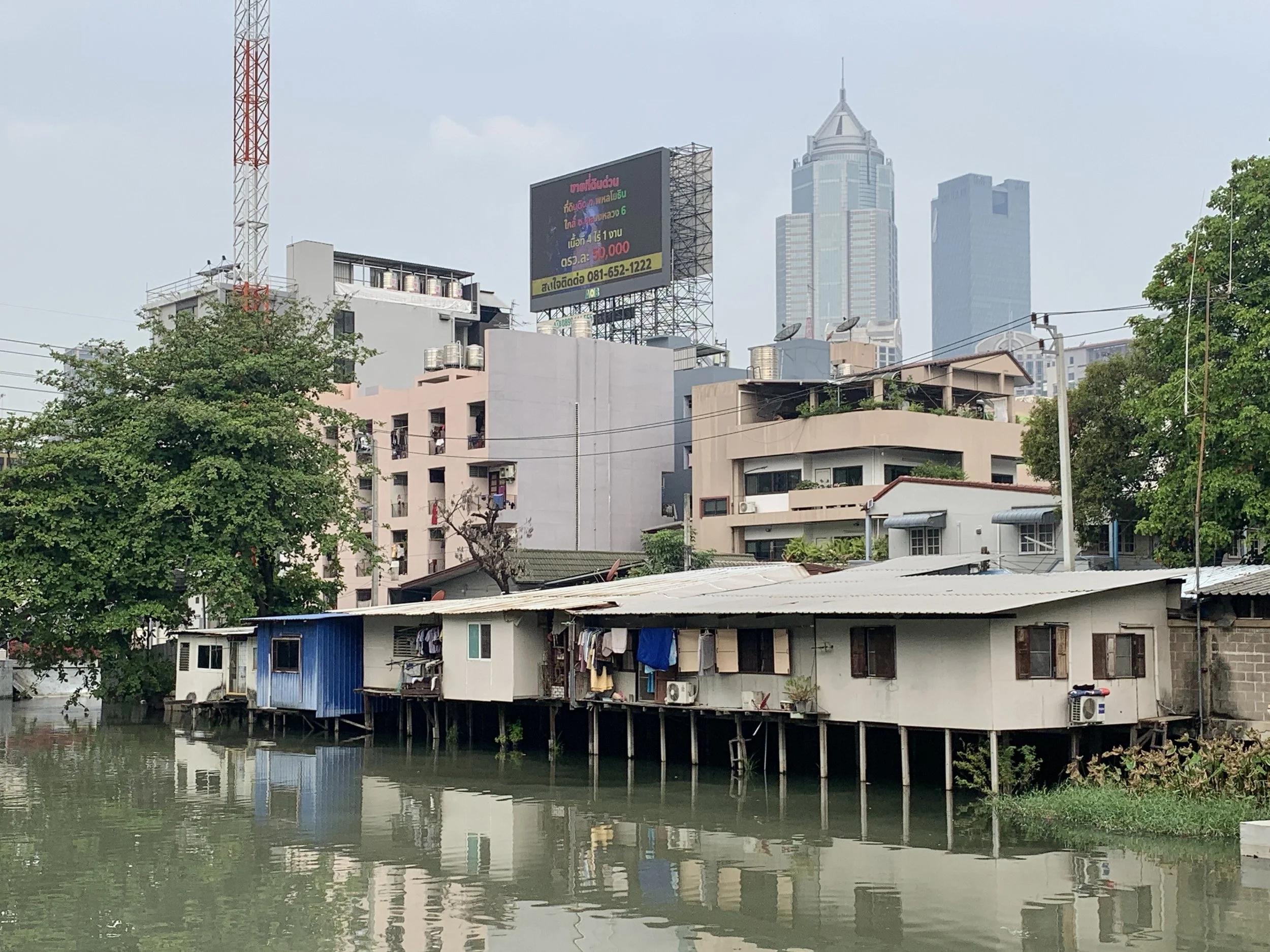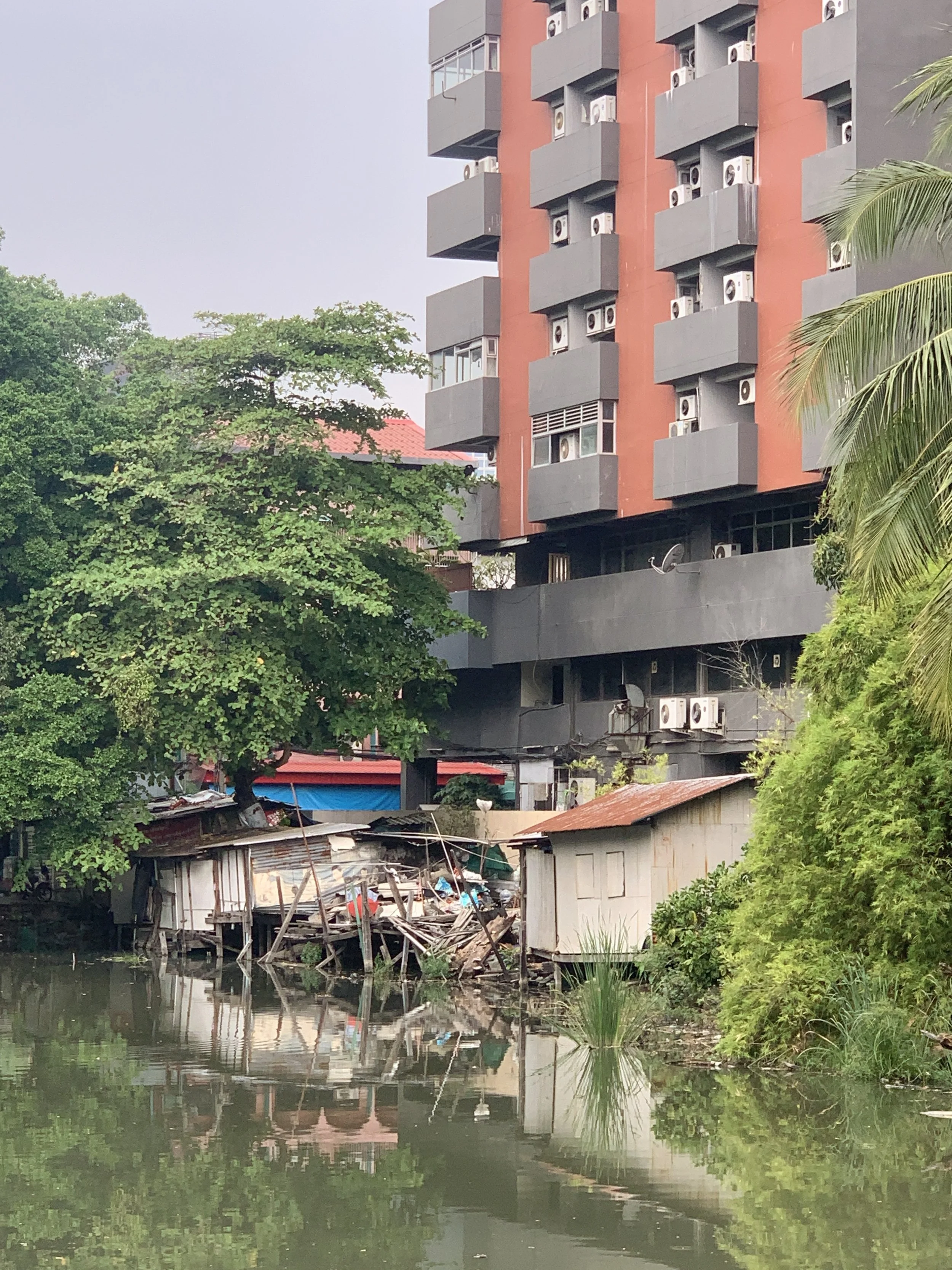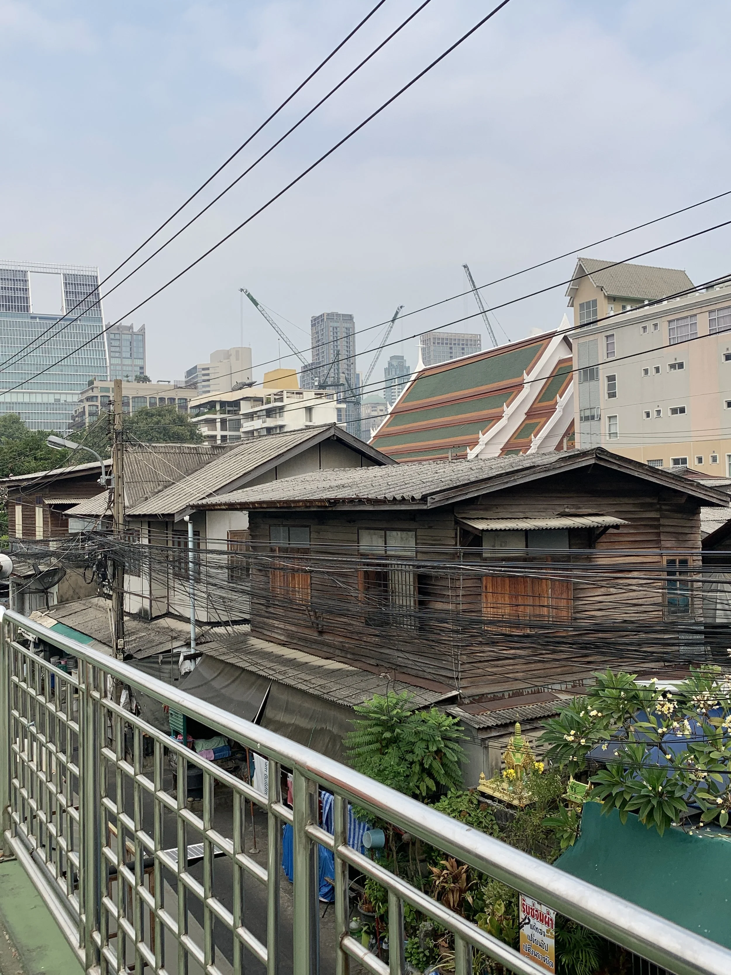 When we popped off the train at the end of the line, we exited through a sparkly mall area offering cafe snacks, coffee, and smoothies. We were given our smoothie [in a to-go cup] in a plastic bag to carry it. No one was eating or drinking their goods, just going on about their way with little plastic bags in hand with food or drink cups in them. Everything was so sparkling clean I thought perhaps we weren’t allowed to consume our drinks inside. We walked down some steps, around a corner, and down a path on the side of some other train tracks. This is where the sparkling clean ended and I felt free to drink my fresh coconut smoothie. The tracks started out lined with people selling things: carts offering street food, a few clothing racks, and trinkets. And then it all changed very quickly to little shanty shacks, where people lived, as far down the tracks as I could see. We continued all the way until a cross street finally opened an exit path. It remains my most vivid memory from my time in Bangkok. I of course took no photos here, but these images remain branded in memory: a half naked elderly man with a missing tooth sitting in his entryway (there was no door), a young child in torn clothes nibbling on a piece of candy, and trash blowing around the broken concrete planks that shifted while we walked upon them. All this only one street over from sparkling clean. A contrast that is not unique to Thailand. It is a crisis of humanity in a modern world—removed from the land which once provided for our every need.