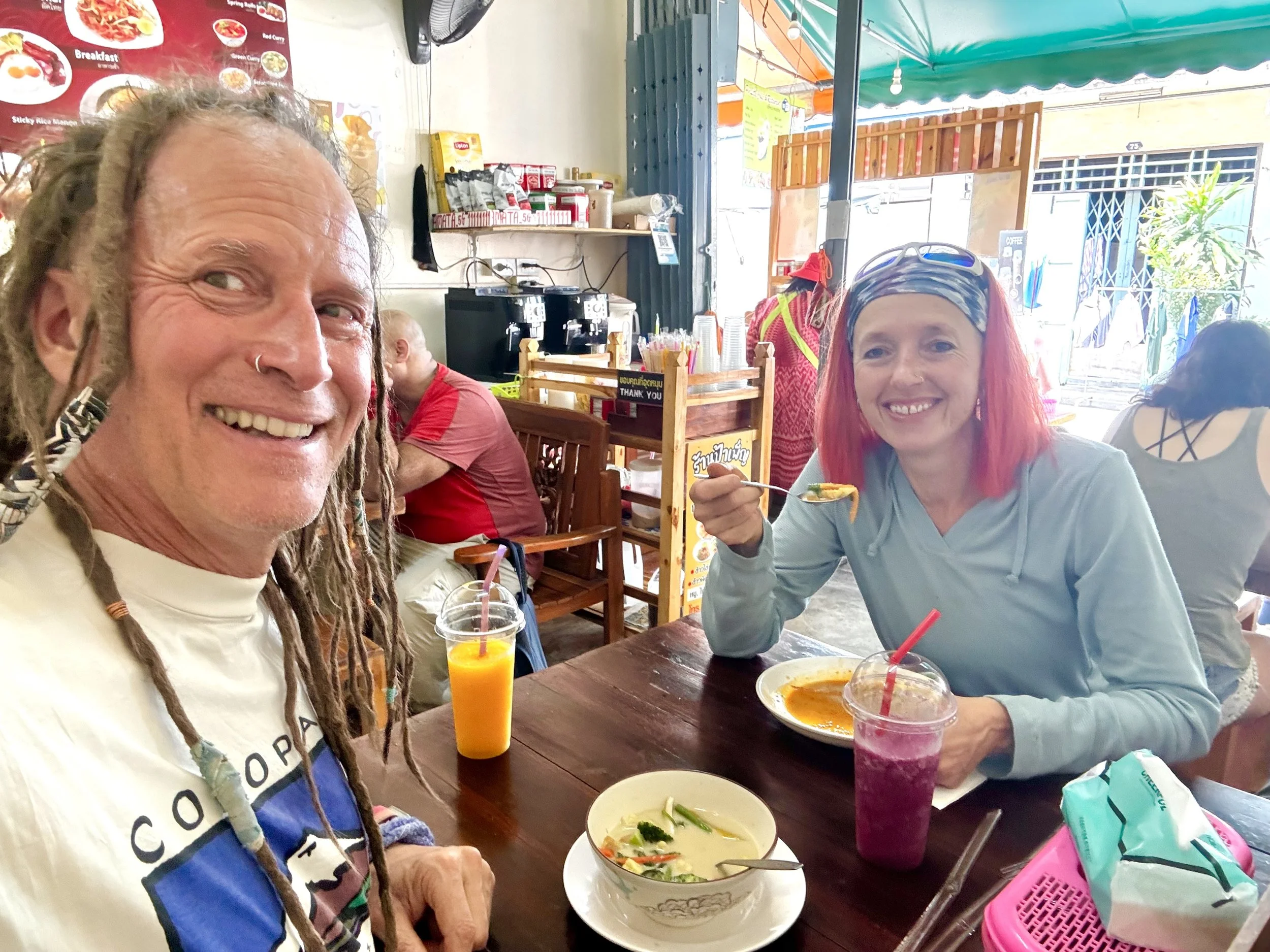 Thailand was a very different experience for me, compared to my usual travels. We had five nights and three full days in Bangkok, followed by a week at Tonsai Beach Resort in Krabi. We had decided on three days as the time necessary to recover from jet lag after flying half way around the world. Our Airbnb in Bangkok was located in the heart of the tourist district, near famous temples, and restaurants that all catered to the experience that tourists want to have while visiting the city. Smoothies, fancy coffee drinks, and massages were abundantly available, and most everyone spoke at least a little bit of English. There was not much wandering off the beaten path during these three days, but in the little that we did do, the only things that I can note here are that smoothies are not so widely available once you leave the tourist district, and all those beautiful clean streets can take a very dramatic shift just a few streets away.