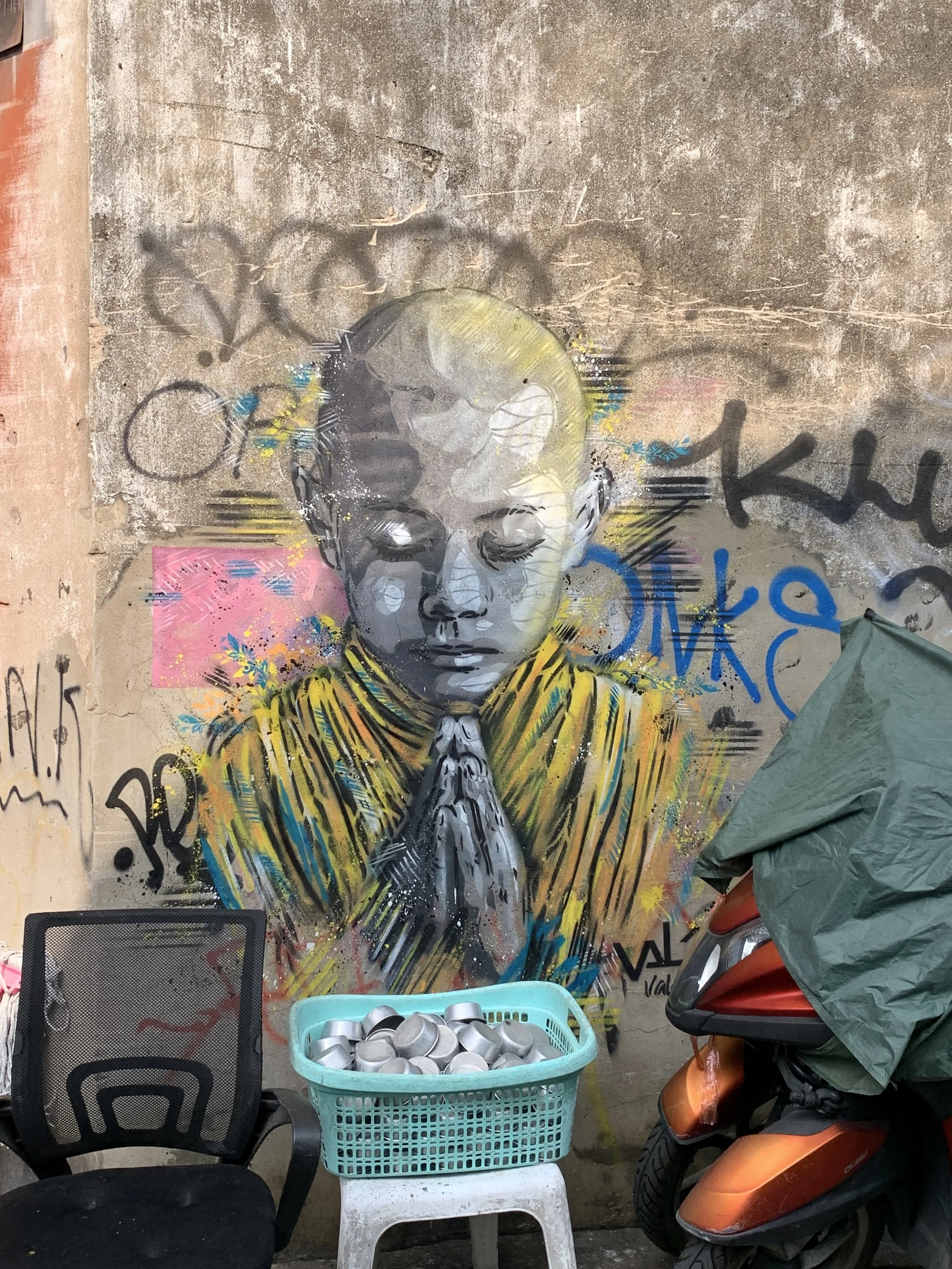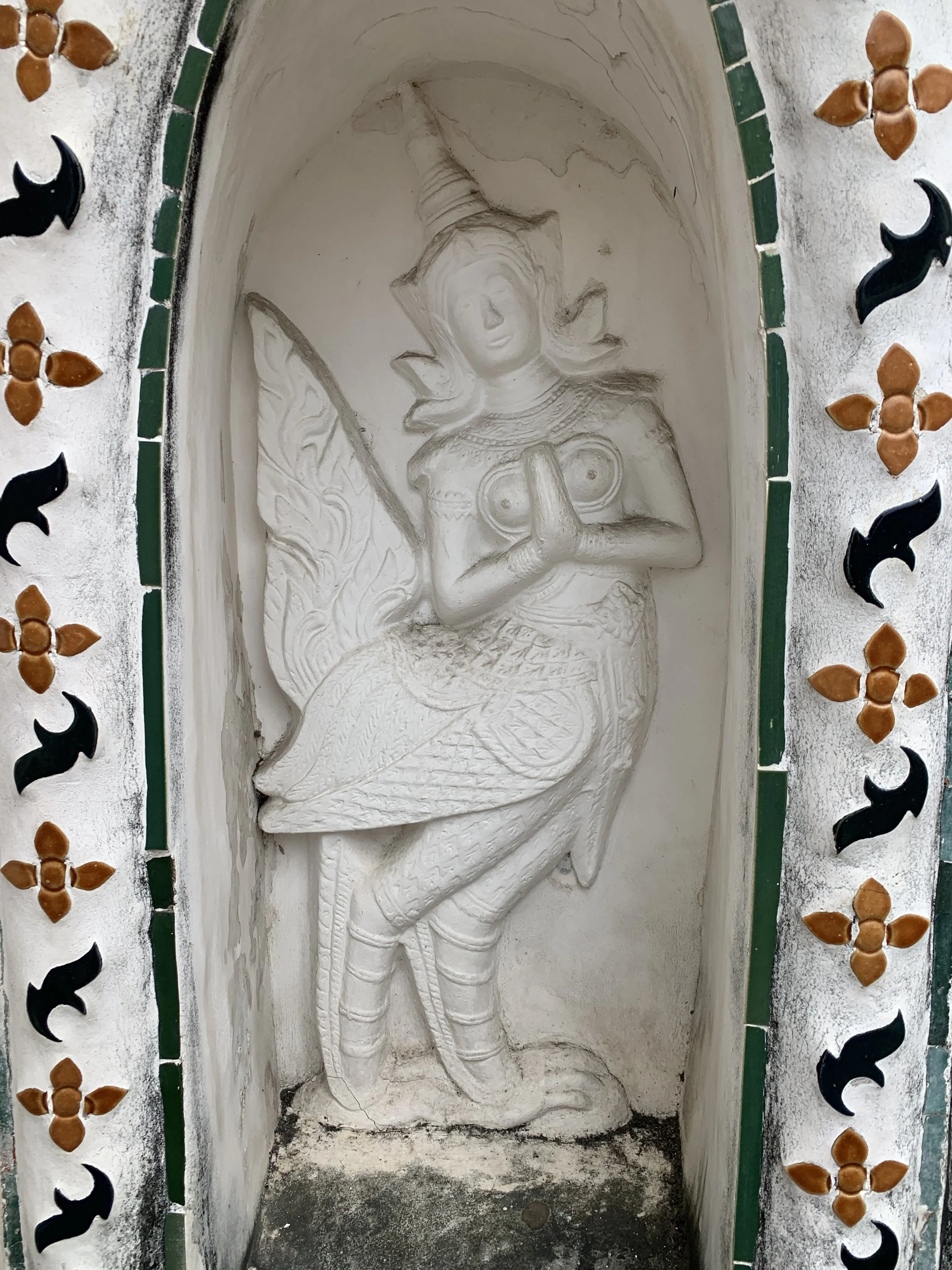 On our last day, we visited the Bangkok Museum of Contemporary Art. One thing that stood out to me was the figurative work painted in a traditional Thai style, featuring buddhas, chakras, a dancing female figures wearing traditional Thai outfits all adorned with pointy headwear. During the second part of our time in Thailand, while wandering the beaches of Tonsai and Railay I started noticing spiraling sea shells that came to a point, and I wondered if this was the inspiration for the pointy headwear on the figures in the paintings.